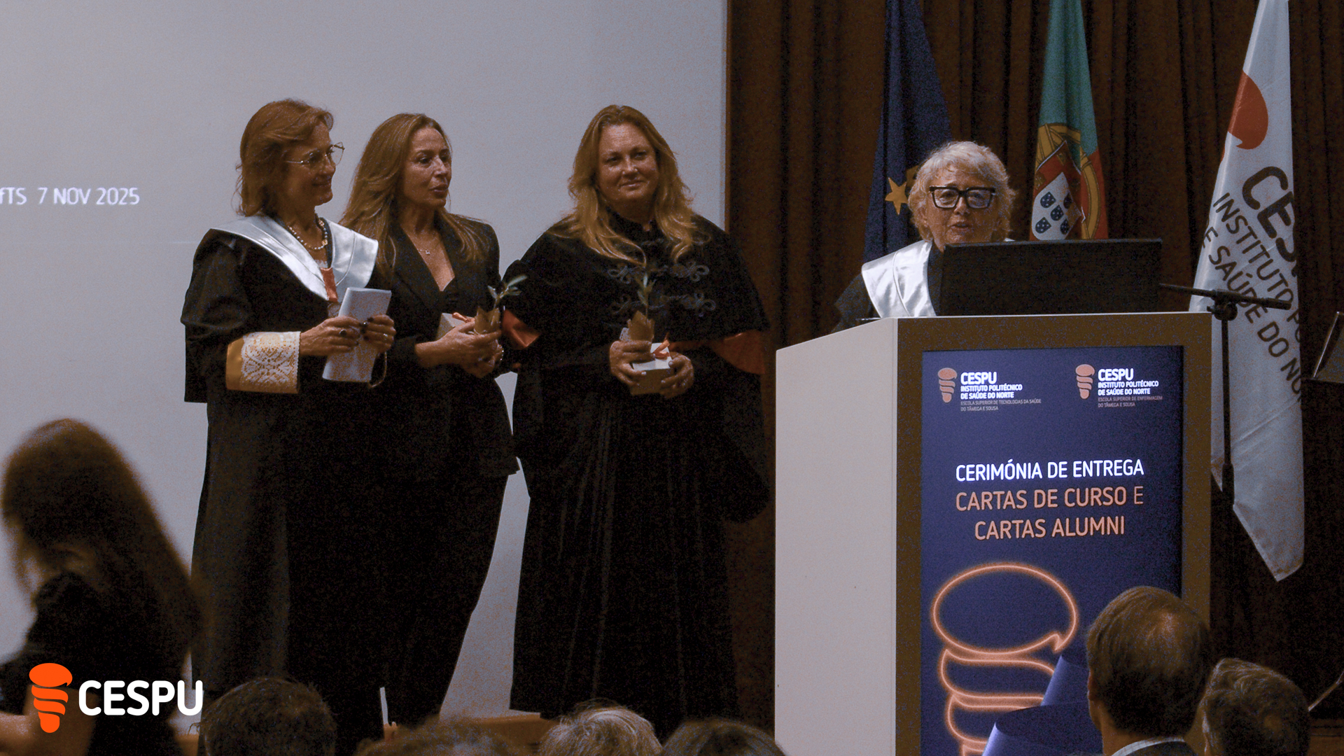Ao longo da cerimónia, foram entregues as Cartas de Curso e Cartas Alumni aos novos diplomados, bem como os Prémios CESPU-Formação, que distinguiram os estudantes que finalizaram os seus cursos com as classificações mais elevadas.