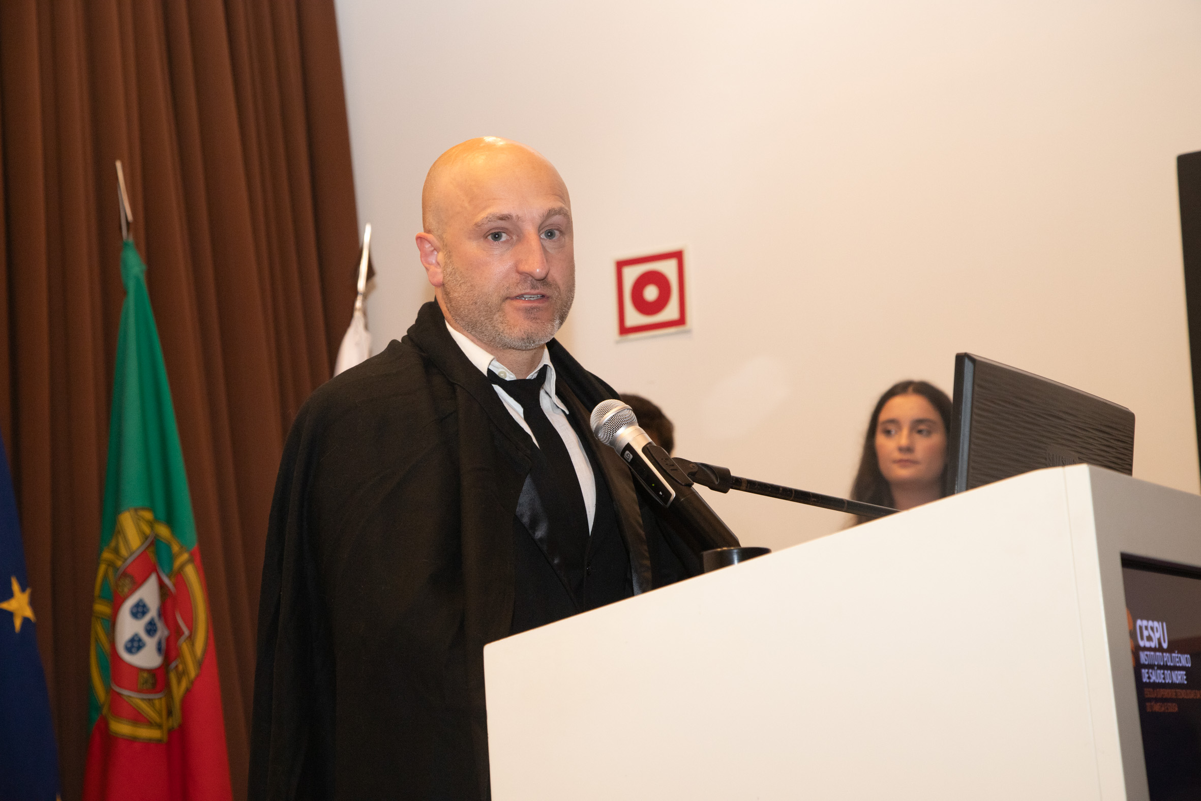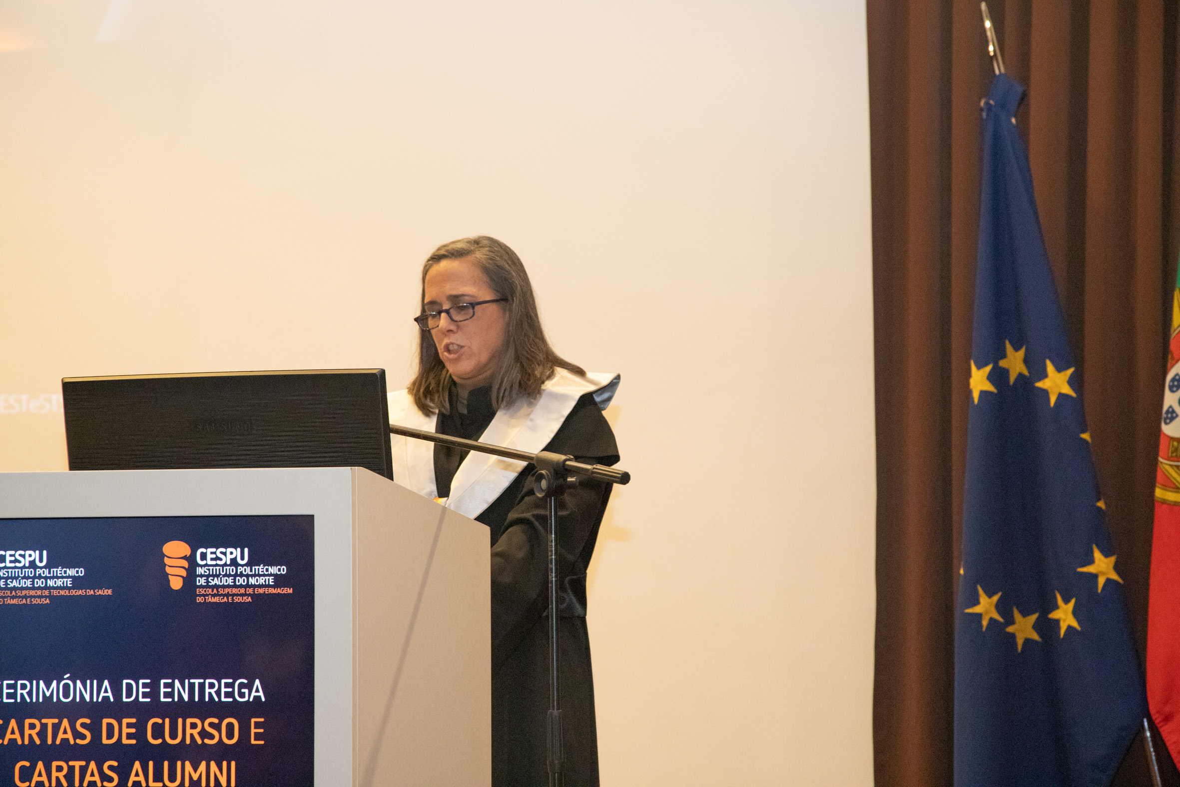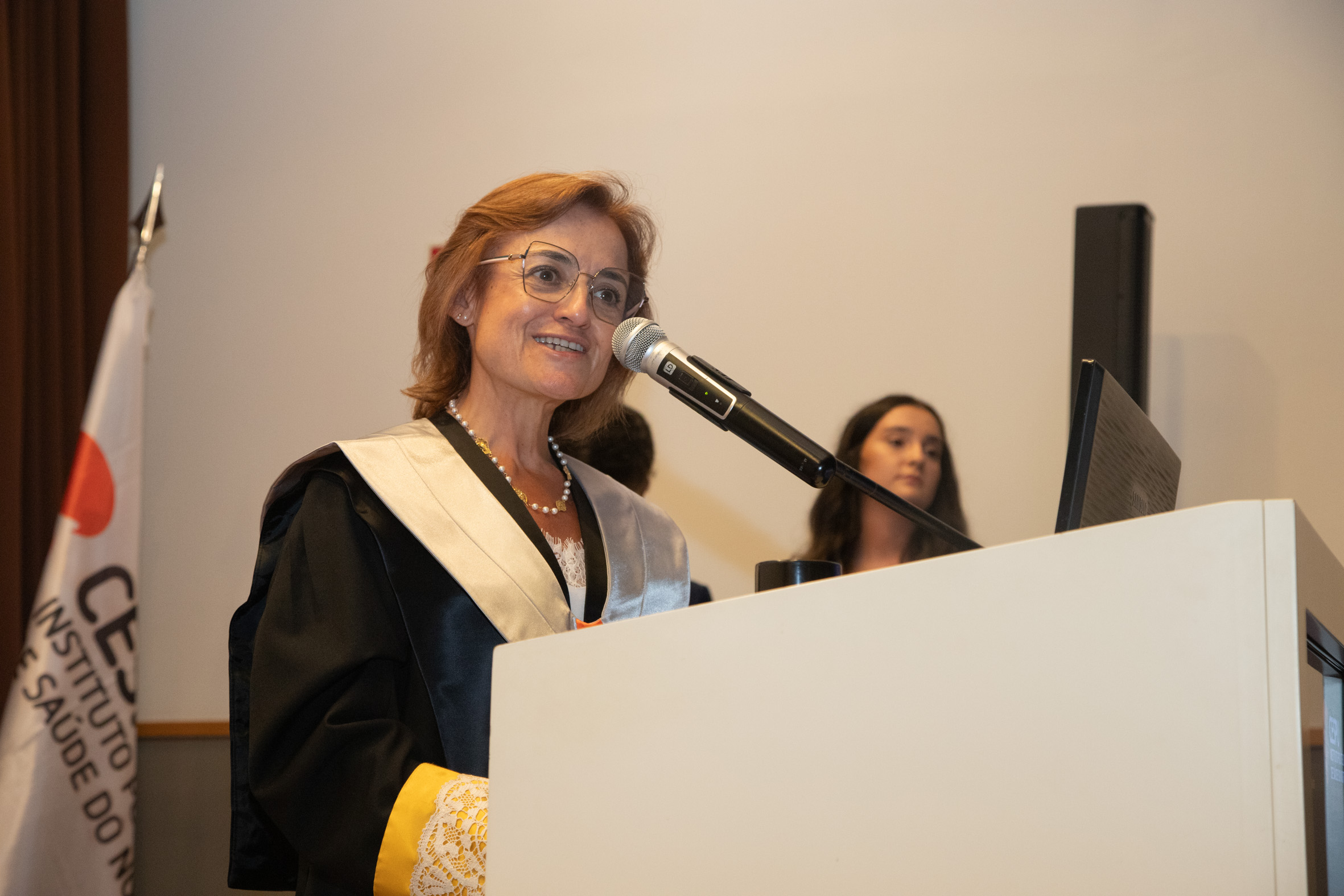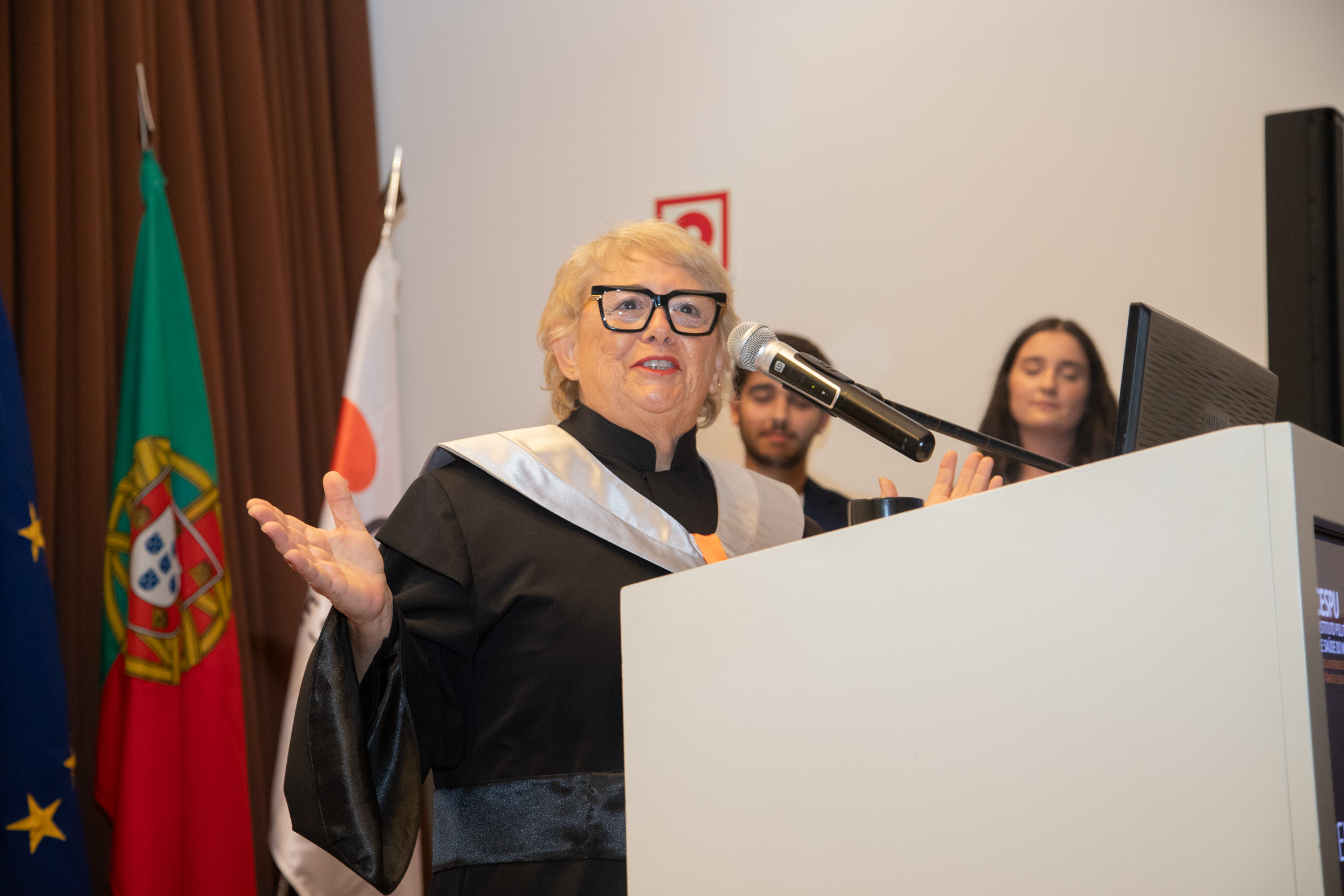 A cerimónia foi presidida pela Diretora da ESTeSTS, Prof.ª Doutora Raquel Esteves, pela Diretora da ESEnfTS, Prof.ª Doutora Clarisse Magalhães, e pelo Prof. Doutor José Manuel Mendes, em representação do Conselho de Administração da CESPU.